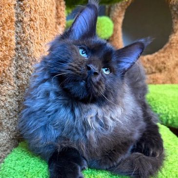 Coming soon to Coon Cat Tail Cattery... Shadow, a beautiful polydactyl black smoke with handsome green eyes serves as a superior King.